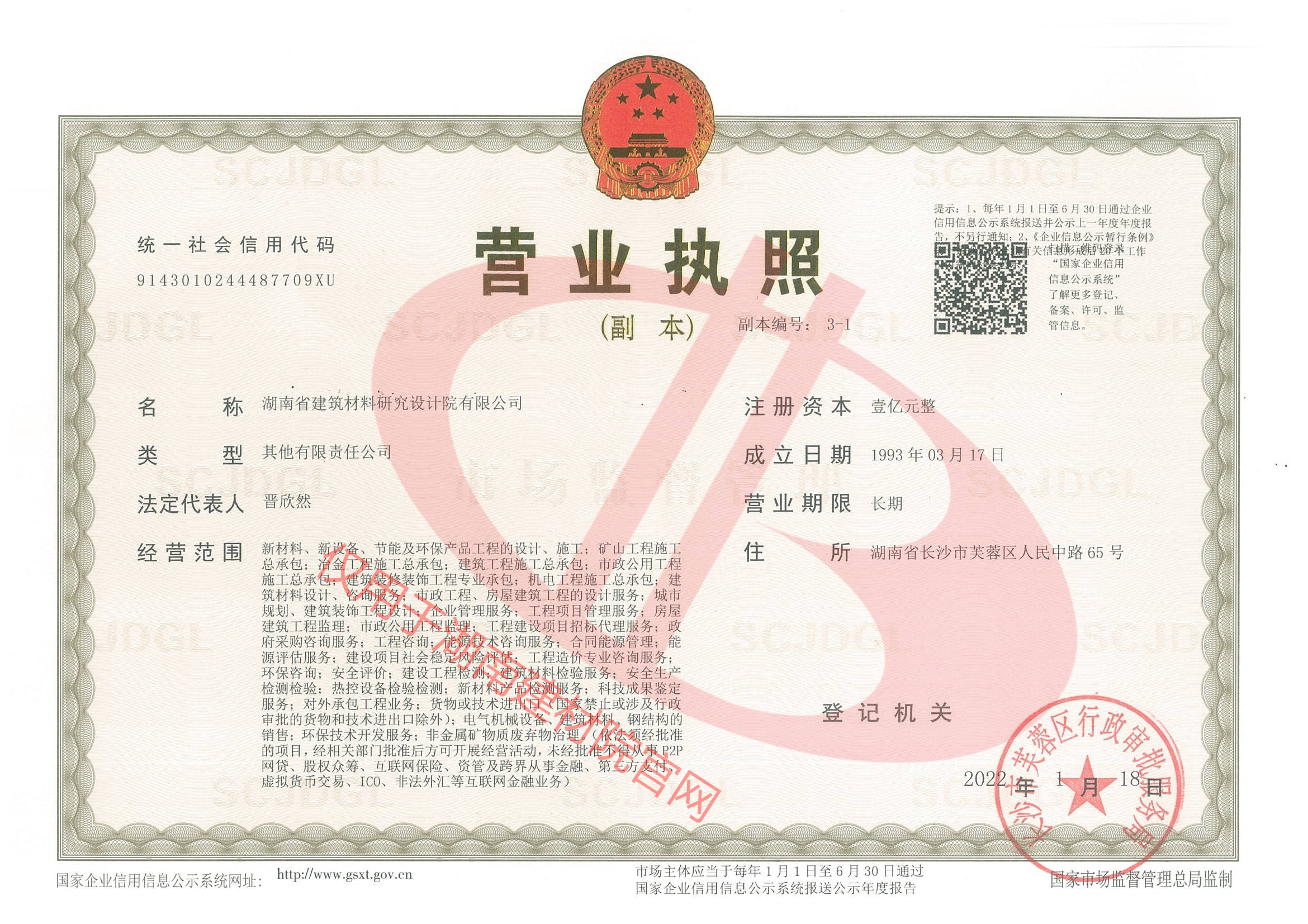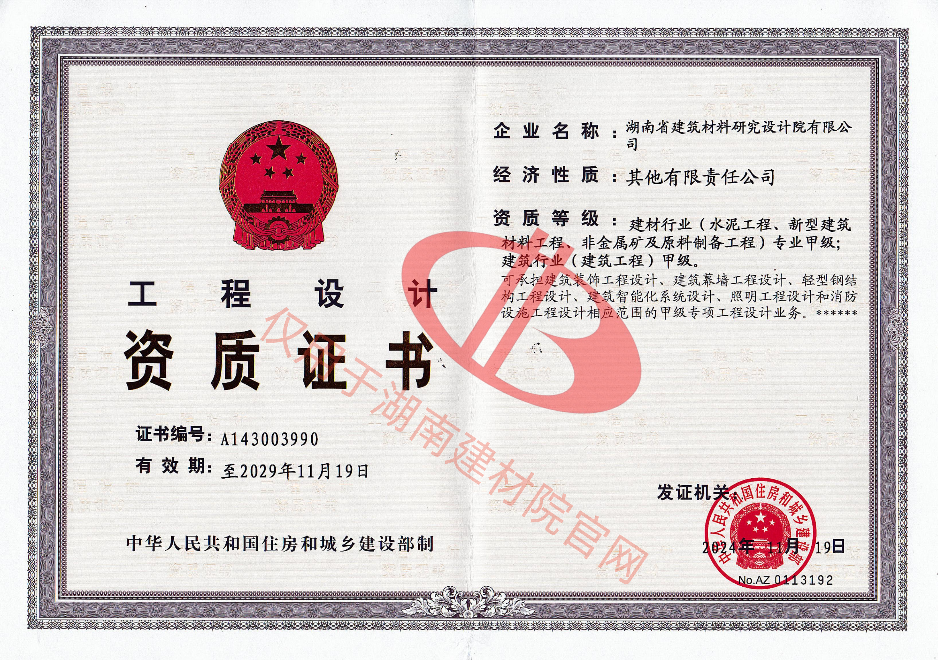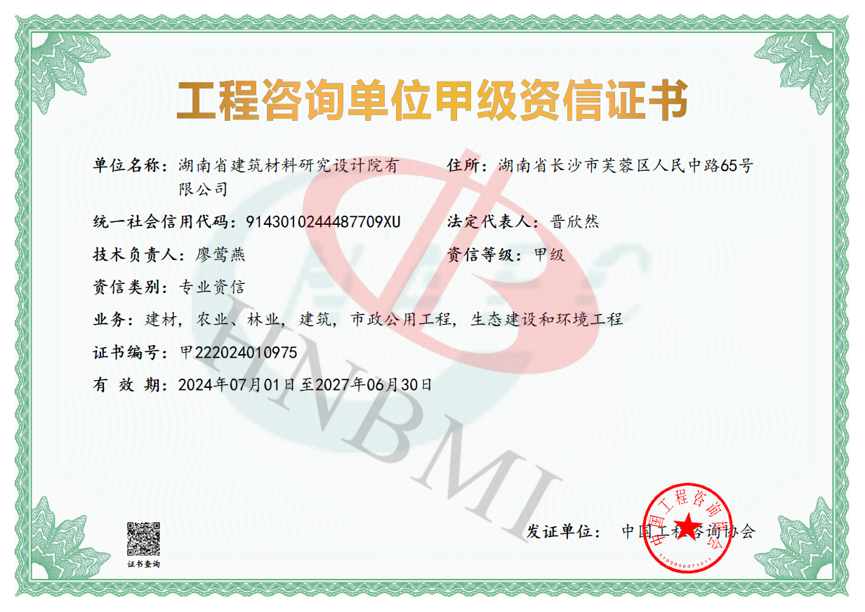 湖南省建筑材料研究設(shè)計院有限公司的前身為湖南省建筑材料研究設(shè)計院,成立于1958年,是1993年全國首批榮獲國家建材行業(yè)設(shè)計、工程總承包甲級資質(zhì)的四個科研設(shè)計單位之一。