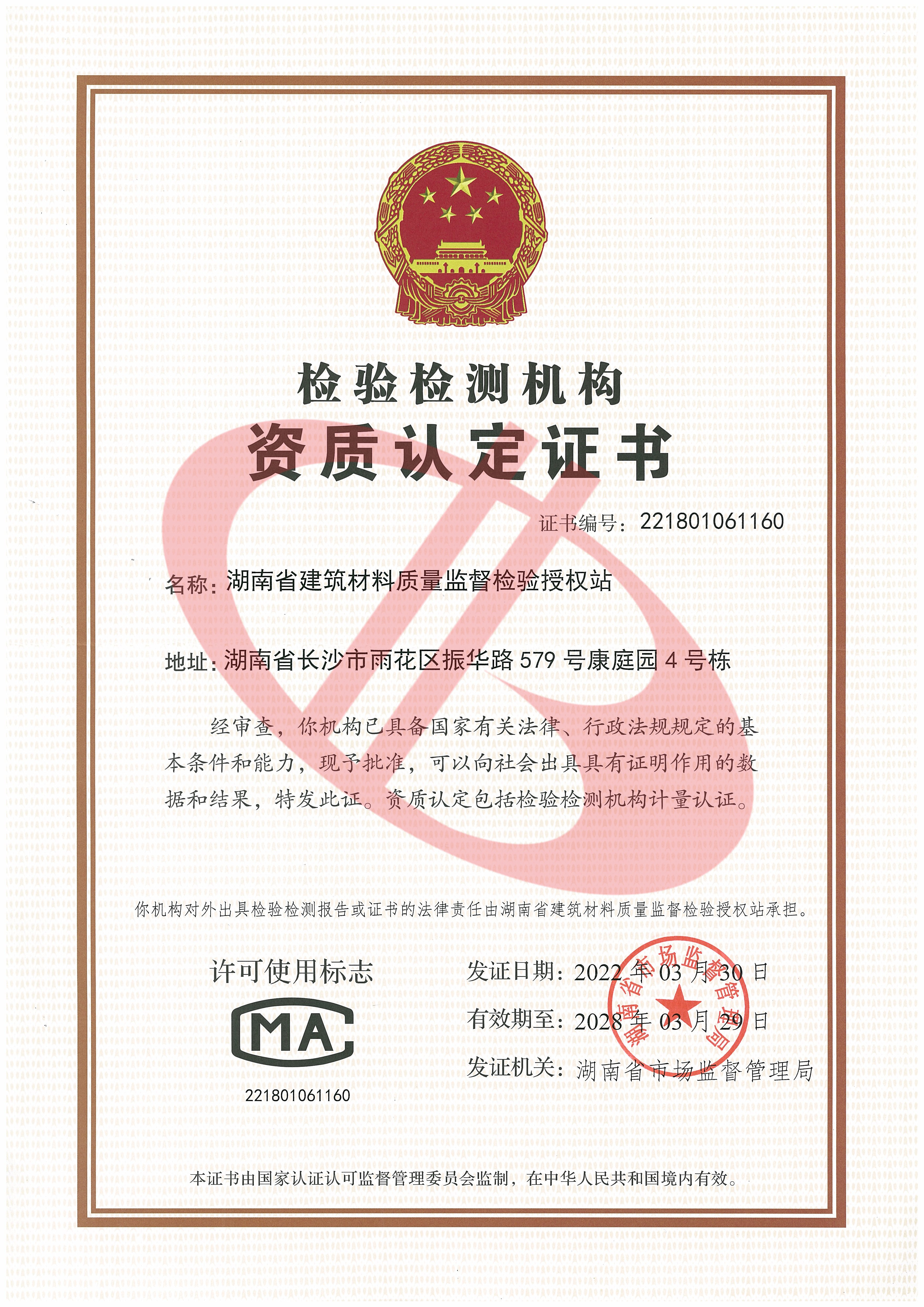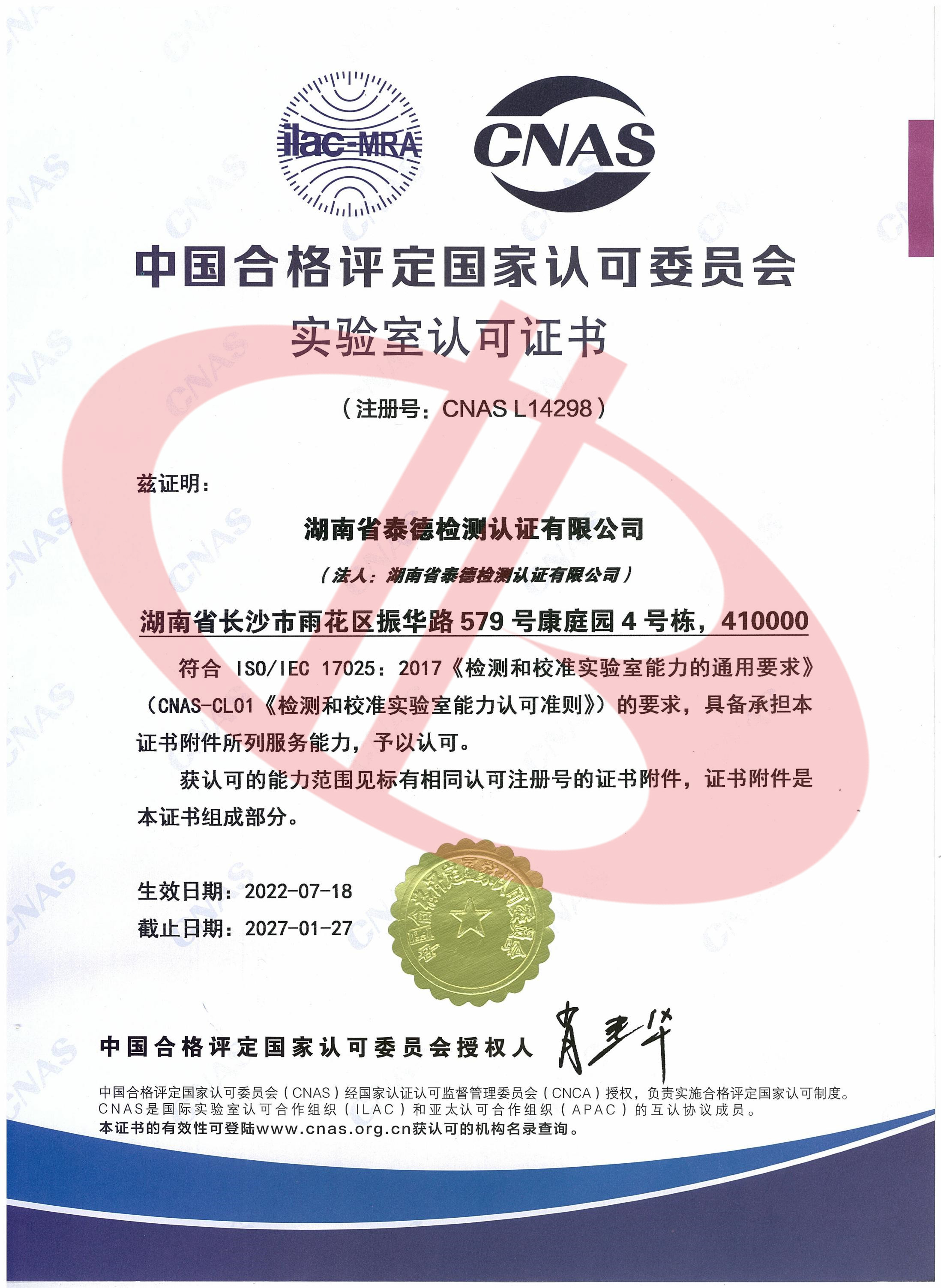泰德檢驗檢測資質(zhì)證書